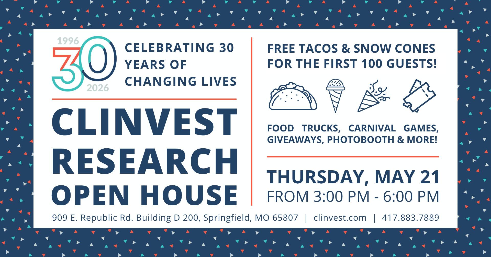 Join Clinvest Research for our 30th Anniversary Open House on May 21, 2026, from 3:00 pm – 6:00 pm!